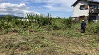 1800平米 数年放置された状態でした。笹とツルも生い茂り、廃棄ありだと高額になってしまう案件でした。ハンマーナイフモアを使い粉砕して、廃棄処分無しで三分の一の値段での処理をご提案しました。なんとか1日で終えられました!粉々に粉砕しているの...