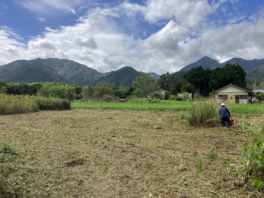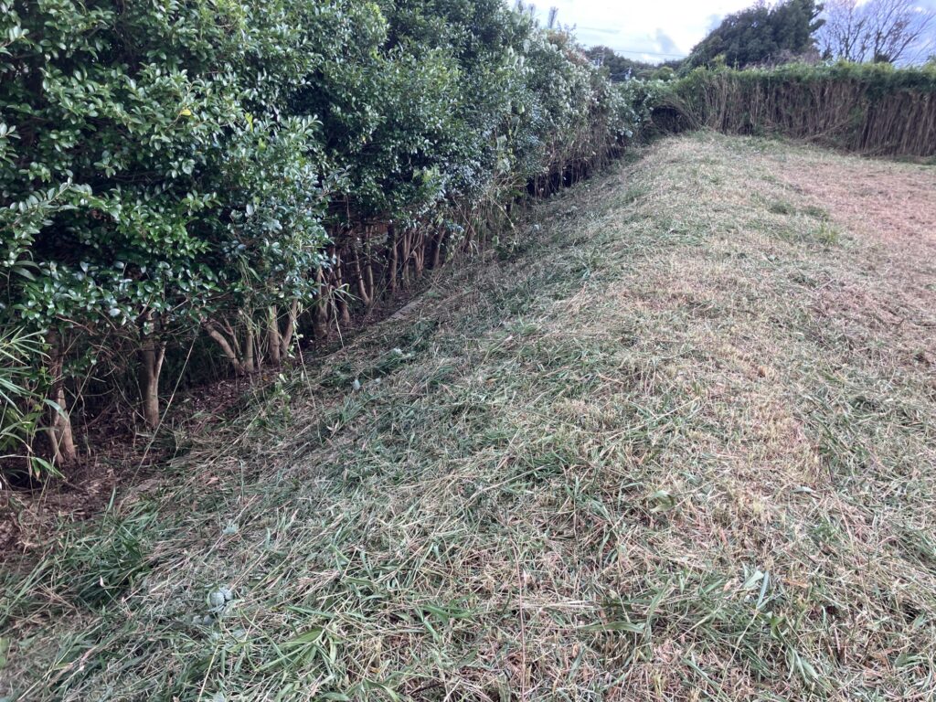 ハンマーナイフモアが入れない斜面は刈り払い機にシュレッダーブレードで処理しました。