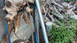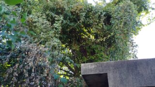 伐採・抜根 四日市市 伐採 雑木が巨木化して、さらにこれまた巨大なツタが巻きつき絡み、他の木々と繋がってしまっていました。簡単に伐倒できる状況ではなかったです。かなり時間がかかりました。ツタの恐ろしさを再認識しました。ご依頼ありがとうございました! 2025.10.29 伐採・抜根